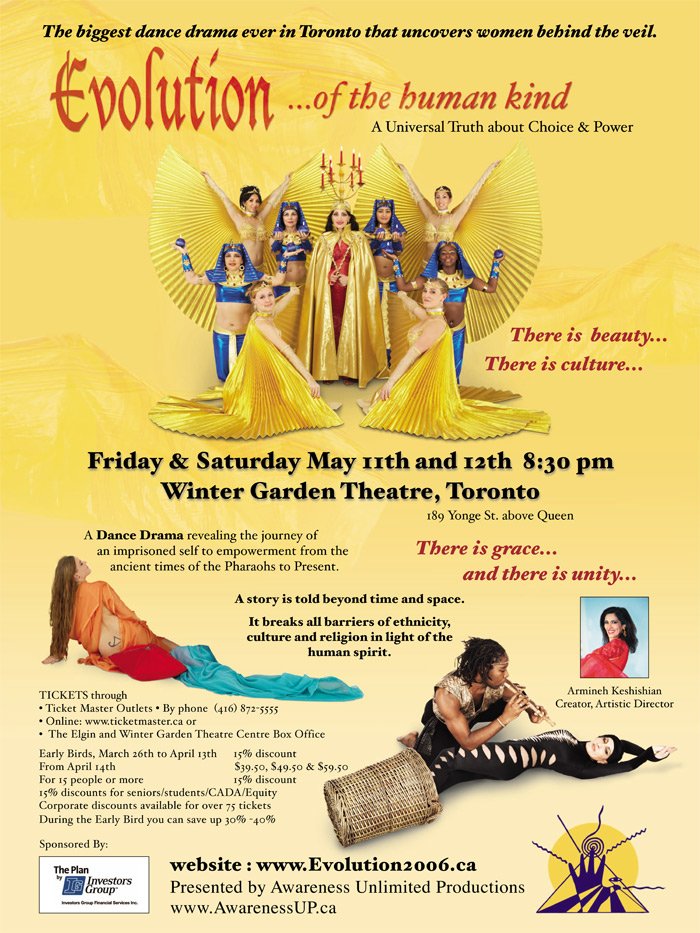 A dance drama revealing the journey of an imprisoned self to empowerment from the ancient times of the Pharaohs to Present.